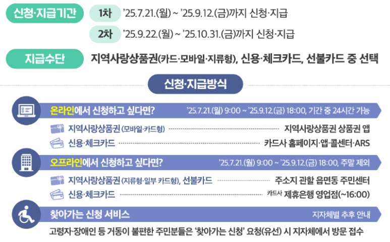 - 모바일·카드형: 지역화폐 앱을 통해 민생회복지원금 신청