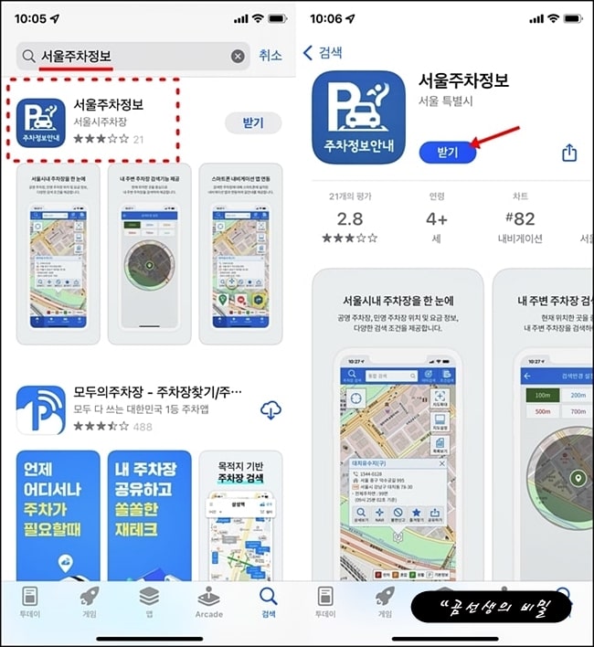 - 안드로이드 사용자: 구글 플레이스토어에서 '서울주차정보' 검색 후 설치