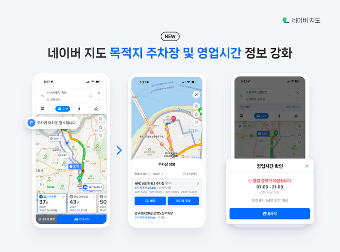 - 길찾기 기능을 통해 네이버지도나 T맵과 연동하여 바로 안내받을 수 있습니다