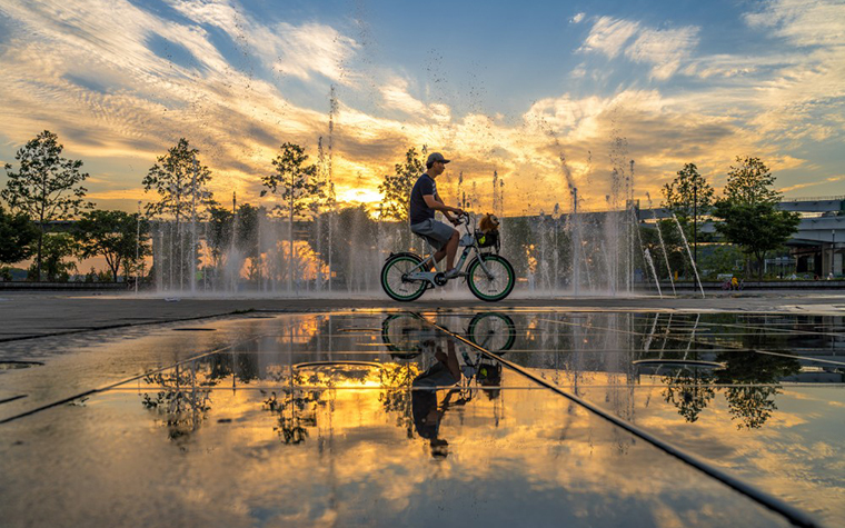 5. 자전거 이용: 안전하게 주행하며 목적지로 이동합니다.