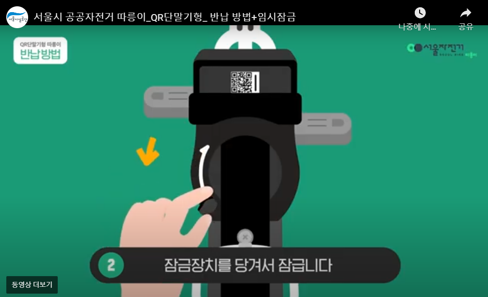 6. 반납: 목적지 근처의 대여소에 자전거를 반납합니다.