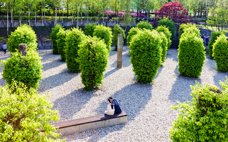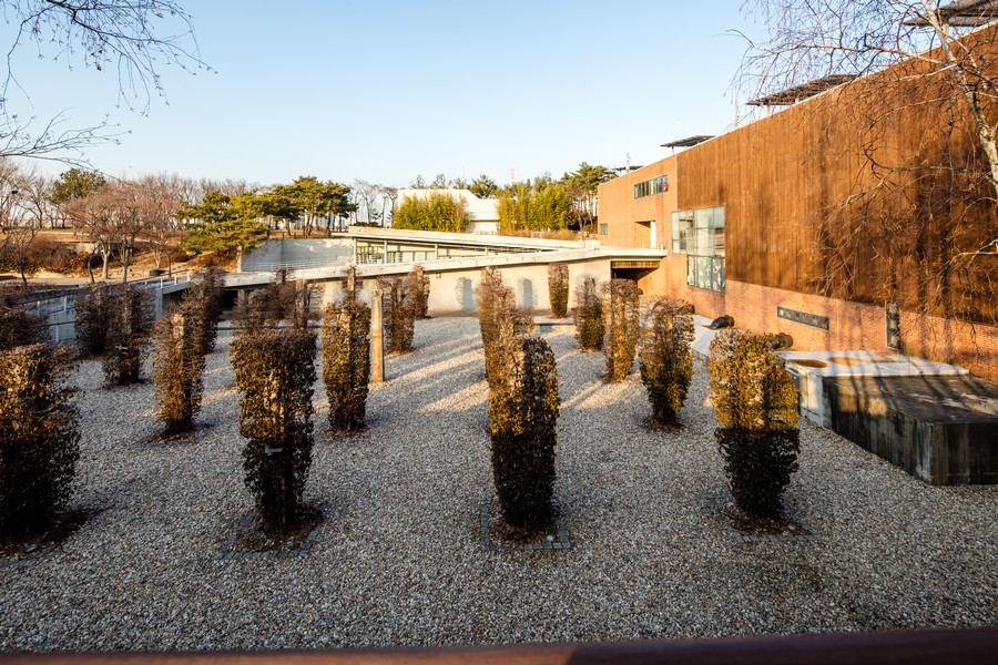 공원 내 곳곳에 마련된 휴식 공간들은 방문객들에게 편안한 쉼터를 제공합니다. 녹색 기둥의 정원에 있는 긴 의자에 앉아 잠시 명상에 잠기거나, 수생식물원 주변을 거닐며 여유를 즐길 수 있습니다.