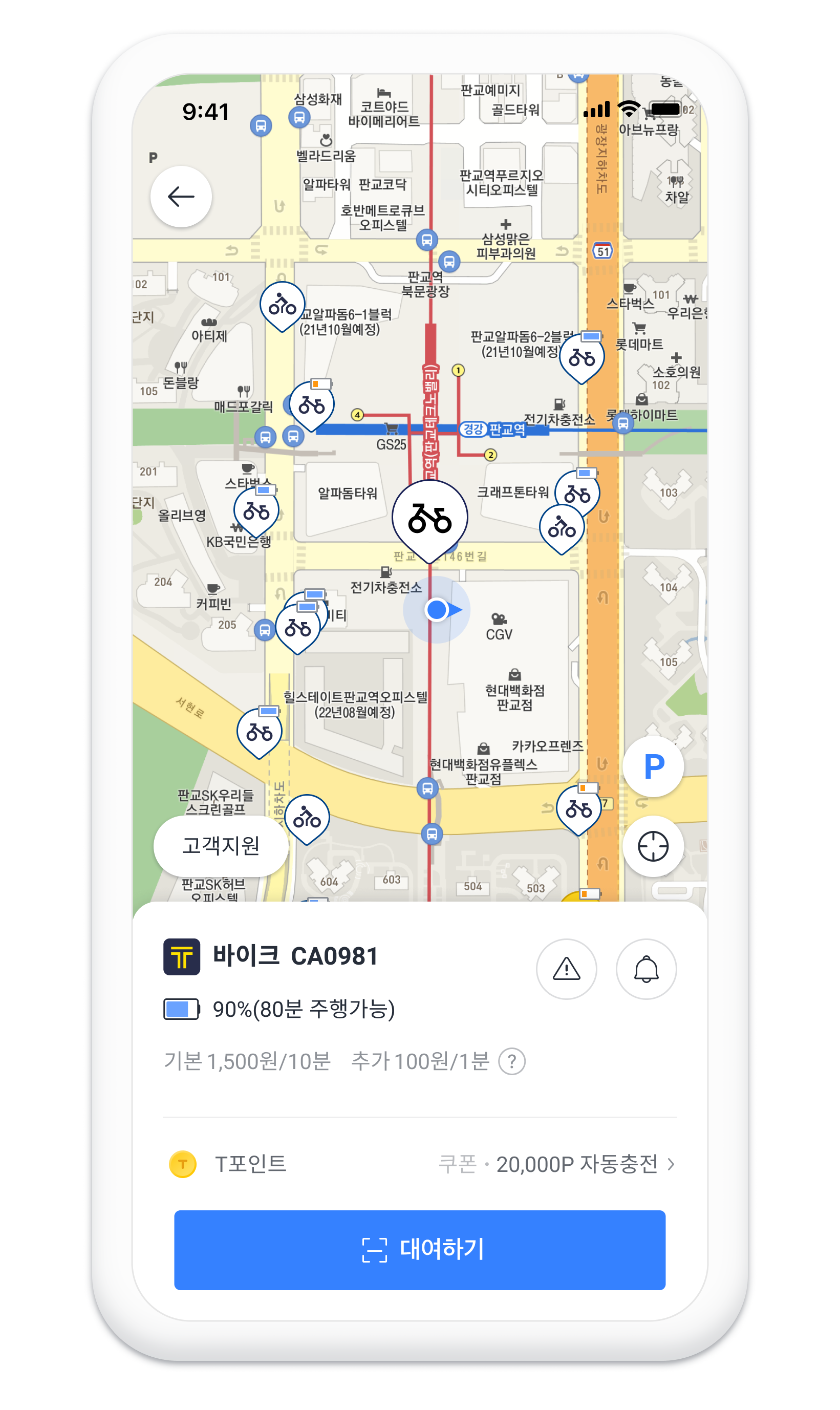 카카오T 앱을 실행한 후 '바이크' 탭을 선택합니다. 지도 상에 표시된 바이크 아이콘을 통해 주변의 이용 가능한 바이크를 확인할 수 있습니다. 2024년부터는 AI 기반 수요 예측 시스템이 도입되어, 사용자의 위치와 시간대에 따라 최적의 바이크 위치를 추천해줍니다.
