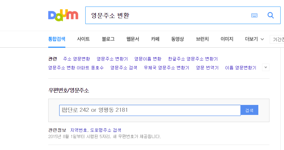다음(Daum) 영문주소 변환기
