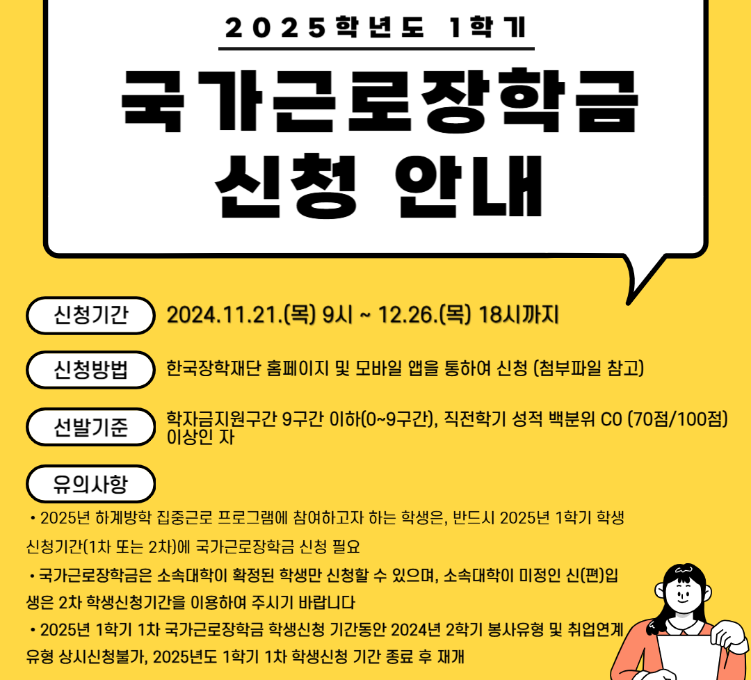 성공적인 국가근로장학금 신청을 위해 다음 사항들을 꼭 체크하세요: