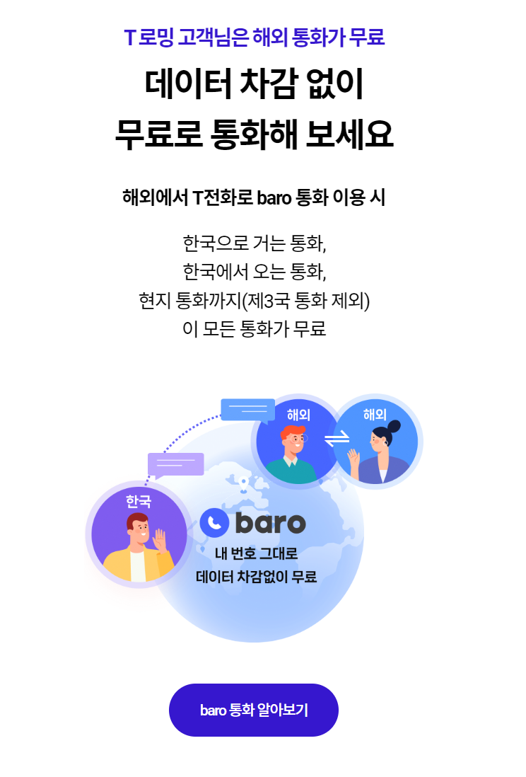 통화baro 통화로 모든 로밍 통화 데이터 차감 없이 완전 무료